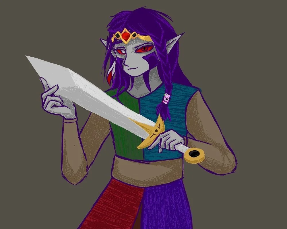 Perhaps my love of this character is due to his eccentric style and number motif, or maybe because I love to re-read the “Four Sword Adventures” manga. Either way, I based the design of Four’s reflection/shadow off of the Linked Universe design and made my own story that I call “Shadow of Skyrim”. I think that this is enough background to introduce my not quite OC (original character) called Link of Shadows.